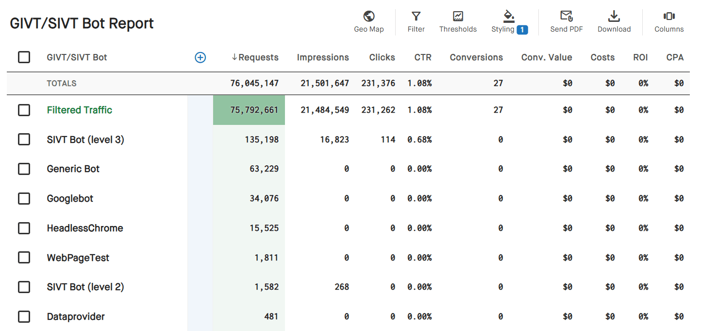 Protect your inventory and revenue with built-in filters for General Invalid Traffic (GIVT) and Sophisticated Invalid Traffic (SIVT). Block obvious non-human traffic and filter bots that mimic real users.
