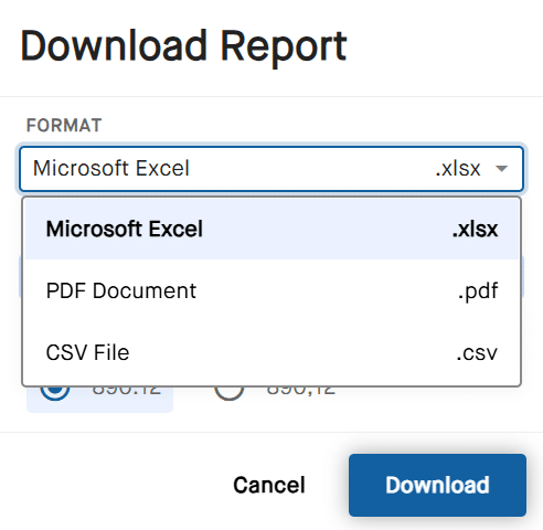 Share reports with stakeholders easily. Download report data in different formats, like Microsoft Excel, CSV, JSON or PDF.