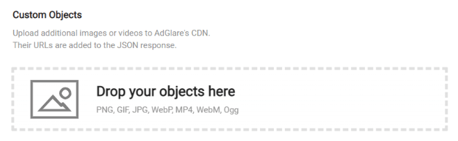 Add images or videos to your creatives. They will be uploaded to AdGlare's CDN and their URLs will appear in the JSON response.